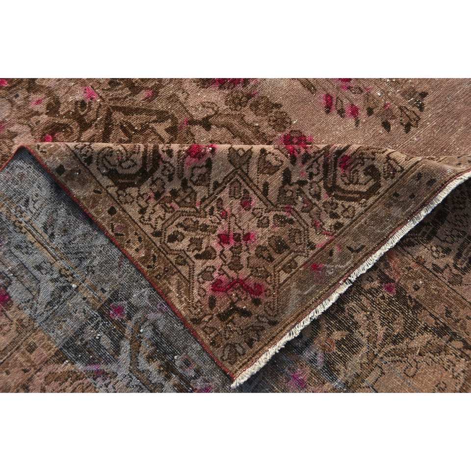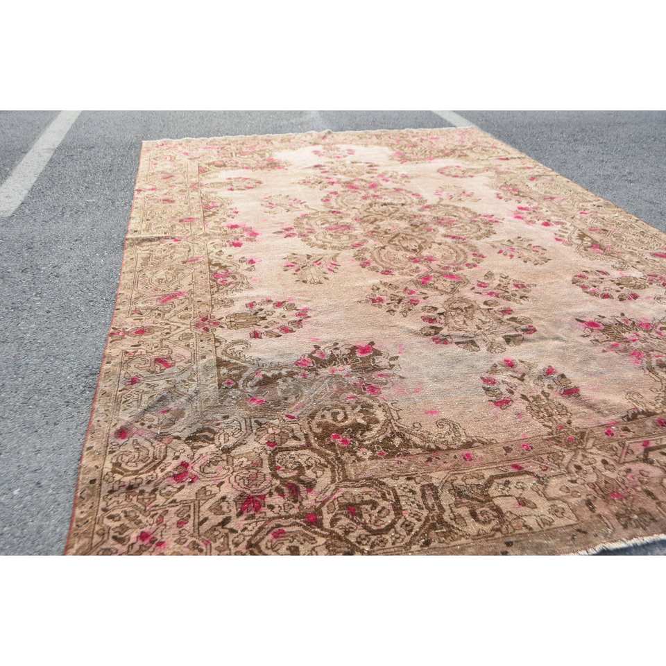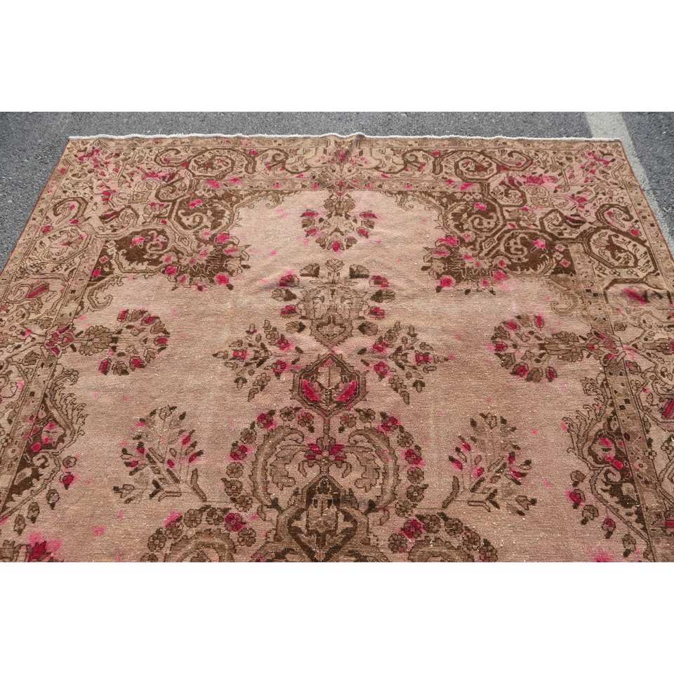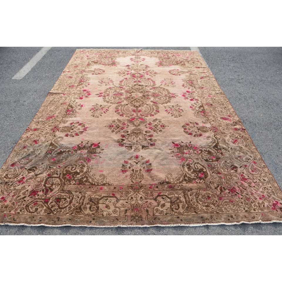 พรมขนสัตว์ตุรกีสีเบจสีน้ำตาล7x11ft คลาสสิกดีไซน์การเย็บปะติดปะต่อกันสำหรับห้องนั่งเล่นทางเข้าหรือด้านหลังของยางข้างเตียง