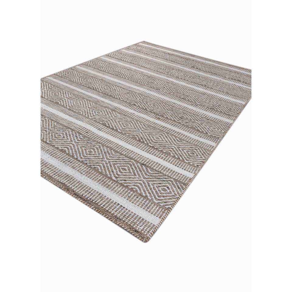 พรมขนสัตว์ลายเรขาคณิตสีน้ำตาลเบจคลาสสิก ทอแบบเรียบ สำหรับห้องนั่งเล่น ห้องโถง รูปทรงสี่เหลี่ยมผืนผ้า รุ่น ADWP-13039 ขนาด 4 เมตร