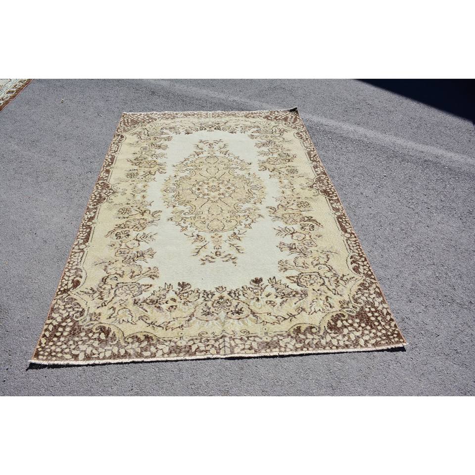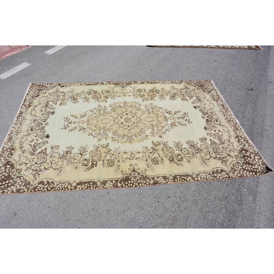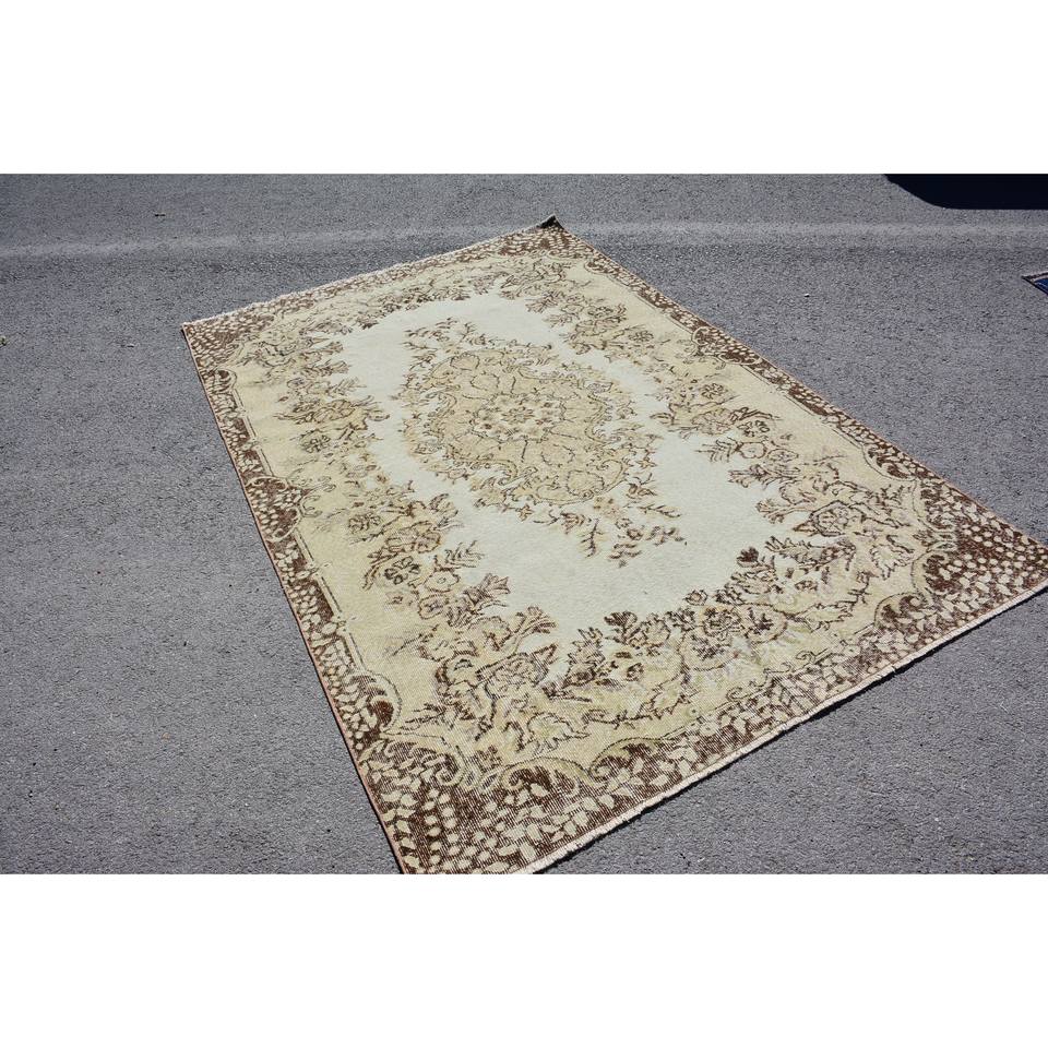 พรมตุรกีโบราณสีเบจสีน้ำตาล5.8x8.7ฟุตแบบเย็บปะติดปะต่อกันการออกแบบวัสดุขนสัตว์ Latex Tabriz สำหรับข้างเตียงสี่เหลี่ยมผืนผ้าห้องโถง