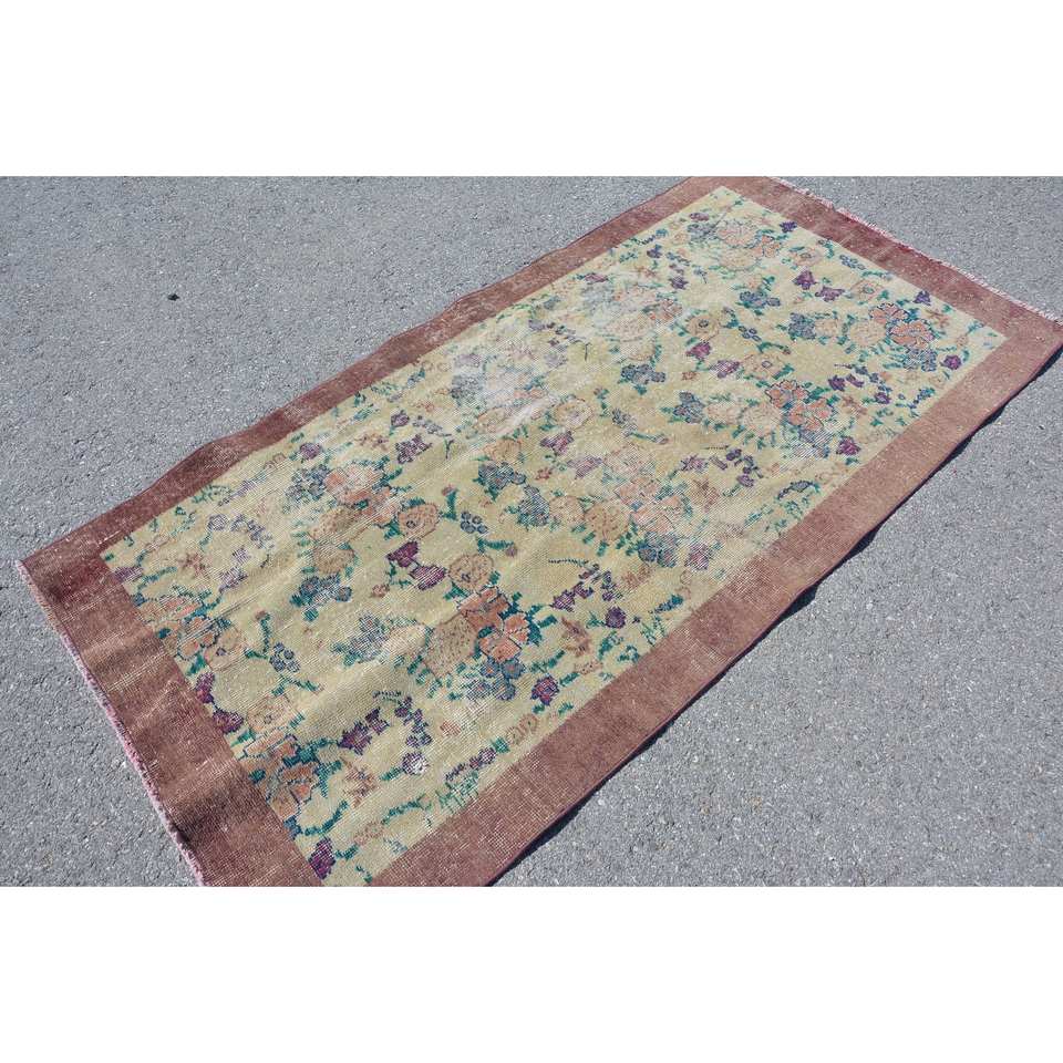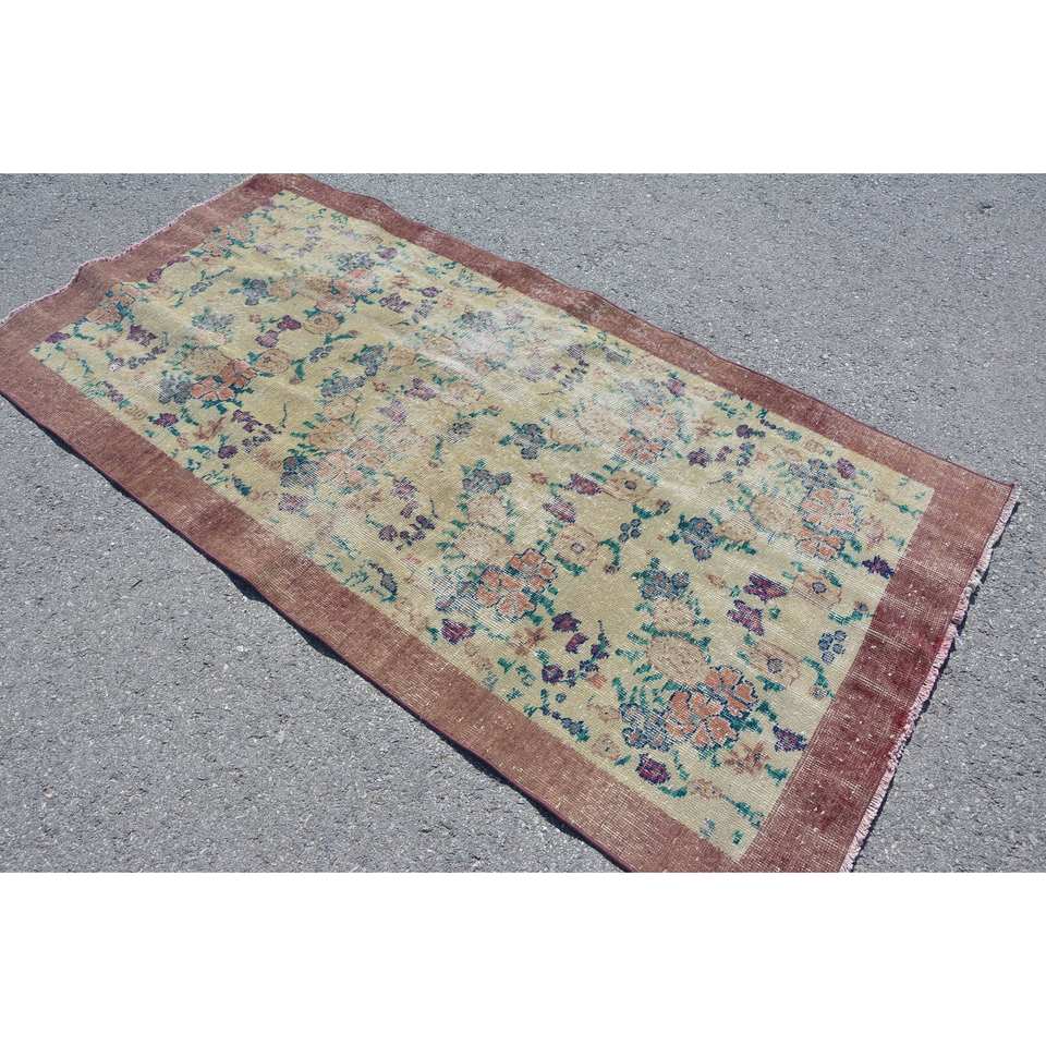 Classic Beige Brown Wool Rug 3.4 X 6.7 ft Vintage Turkish Design Patchwork Latex for Teens Living Bedroom Hallway 4m Rectangle