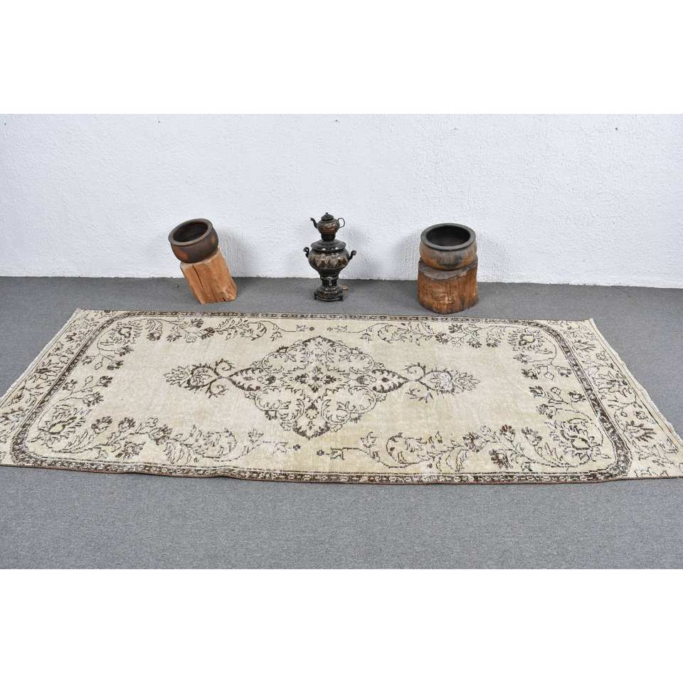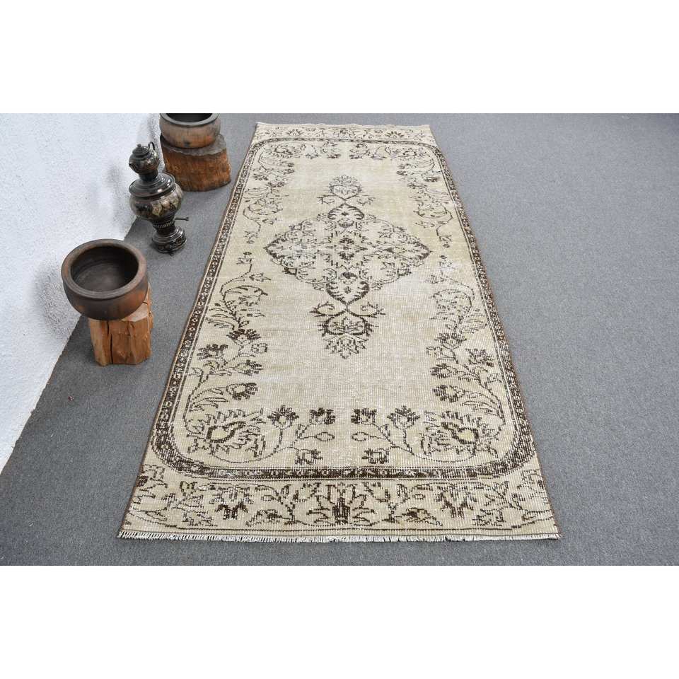 พรมขนสัตว์สีเบจสีน้ำตาลคลาสสิกขนาด3.8x8.9ฟุตทำด้วยมือแบบตุรกีการเย็บปะติดปะต่อกันเป็นรูปสี่เหลี่ยมผืนผ้าสำหรับห้องนั่งเล่นห้องนอนห้องโถงน้ำยาง4เมตร