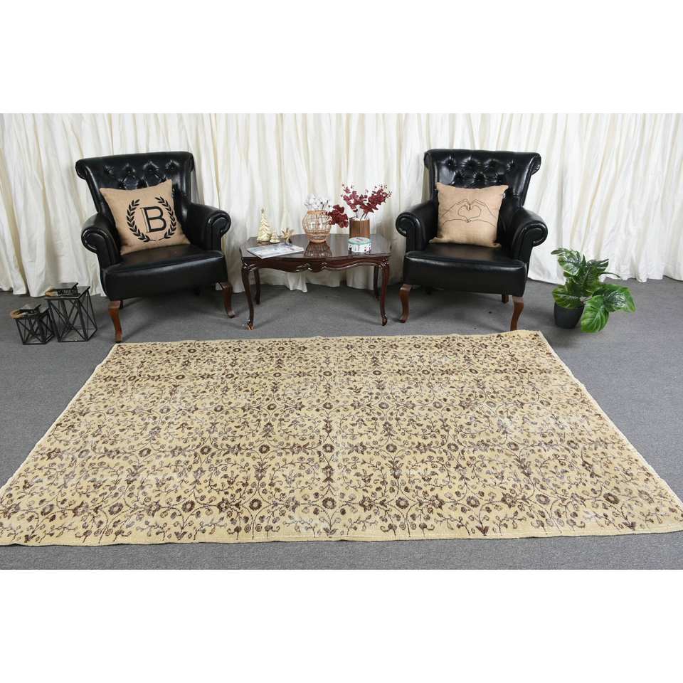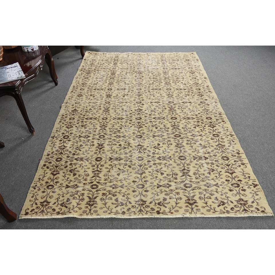พรมขนสัตว์สีเบจสีน้ำตาลแบบคลาสสิก5x8ft สไตล์ตุรกีมีการเย็บปะติดปะต่อกันด้วยยางด้านหลังสี่เหลี่ยมผืนผ้าสำหรับห้องนั่งเล่นห้องนอนหรือ Bedside-4m