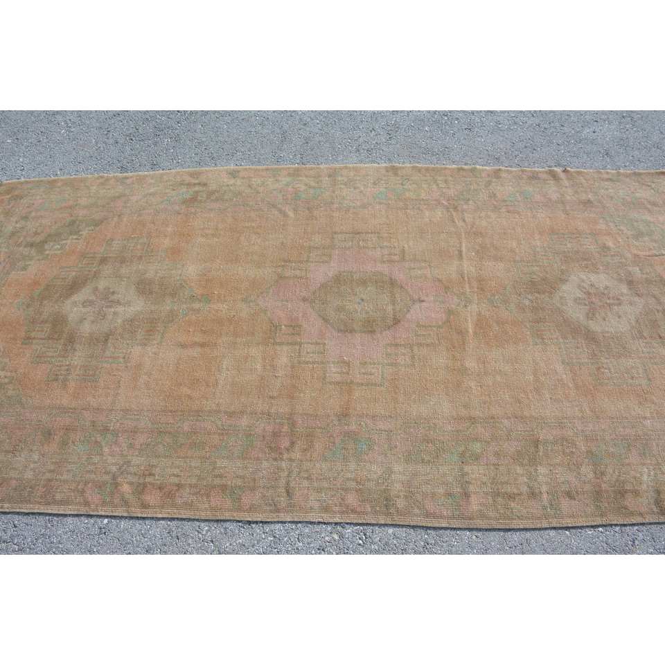 Classic Beige Green Vintage Turkish Rug 4.6 X 9.8 ft Large Area Patchwork Design Wool Material Latex Backing for Hallway Bedroom
