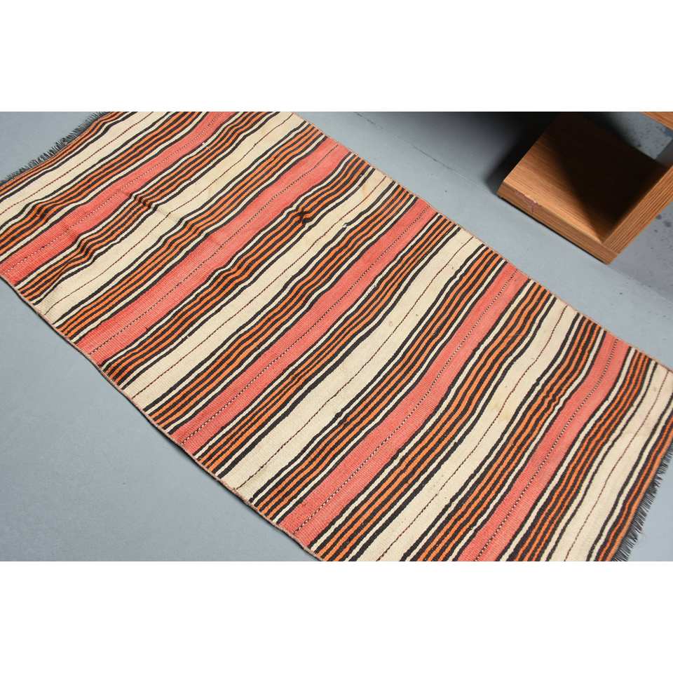 พรมขนสัตว์ลายเย็บปะสีส้มสีเบจคลาสสิกขนาด3.2 x 6FT ห้องโถงสี่เหลี่ยมตุรกีสำหรับทางเข้าห้องนั่งเล่นพรมหลังข้างเตียงทำจากยาง