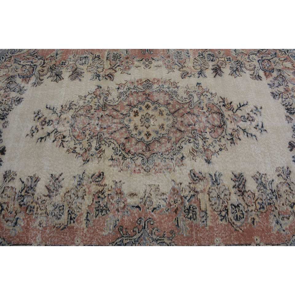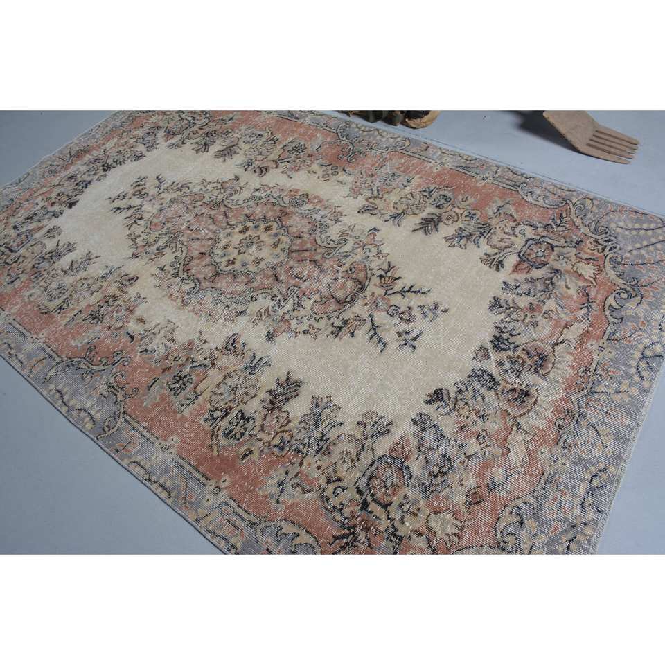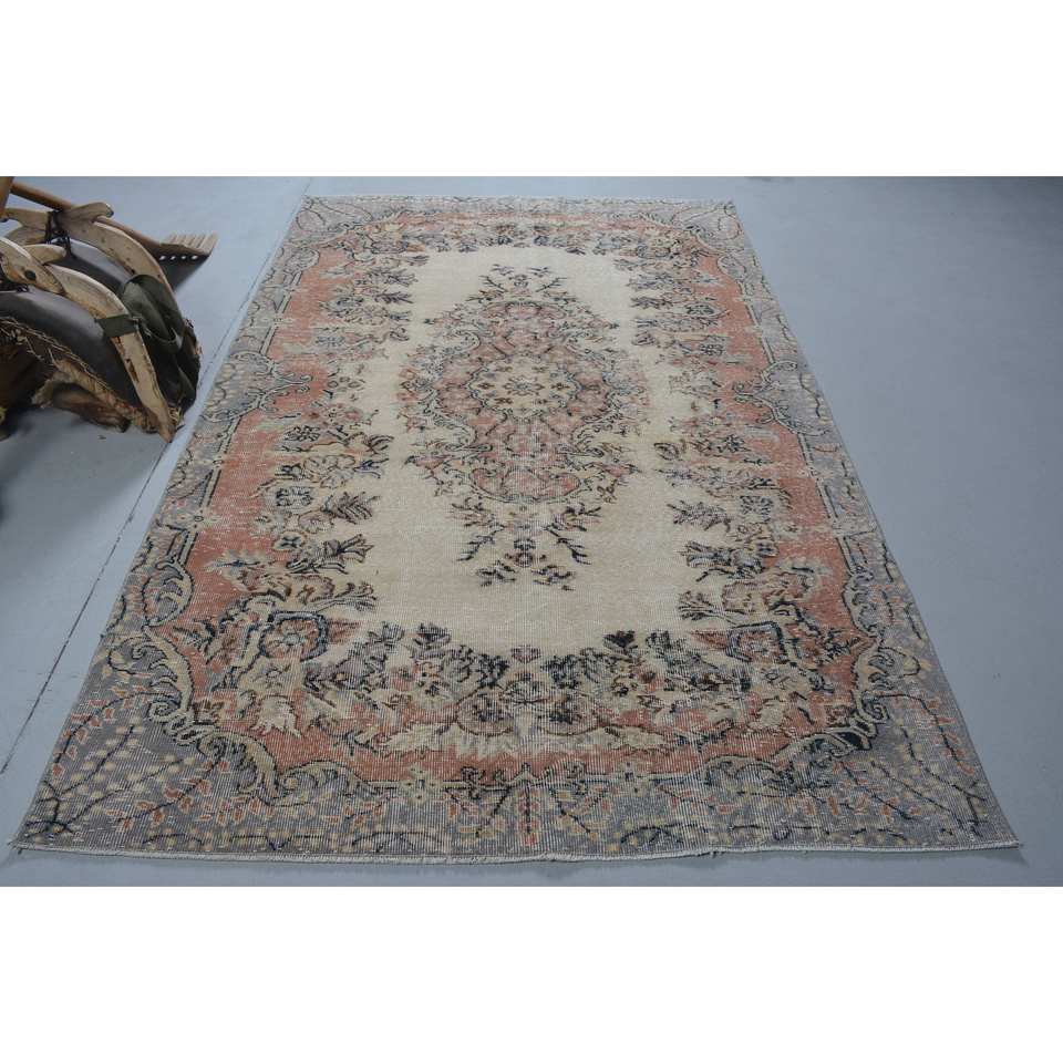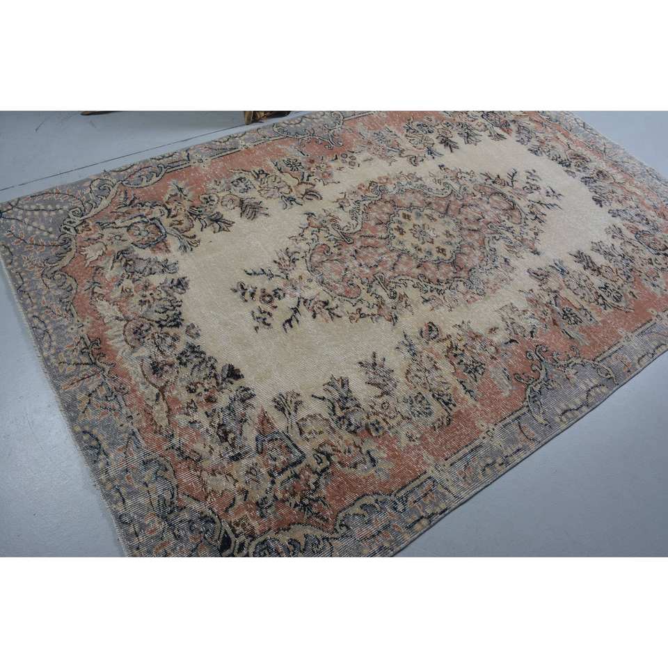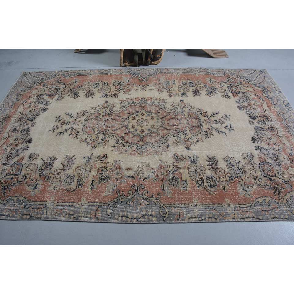 พรมตุรกีโบราณสีเบจสีส้มคลาสสิคขนาด5.6x8.8ฟุตงานปะทำด้วยมืองานปะขนสัตว์ด้านหลังของห้องนั่งเล่นสไตล์ทาบริซ
