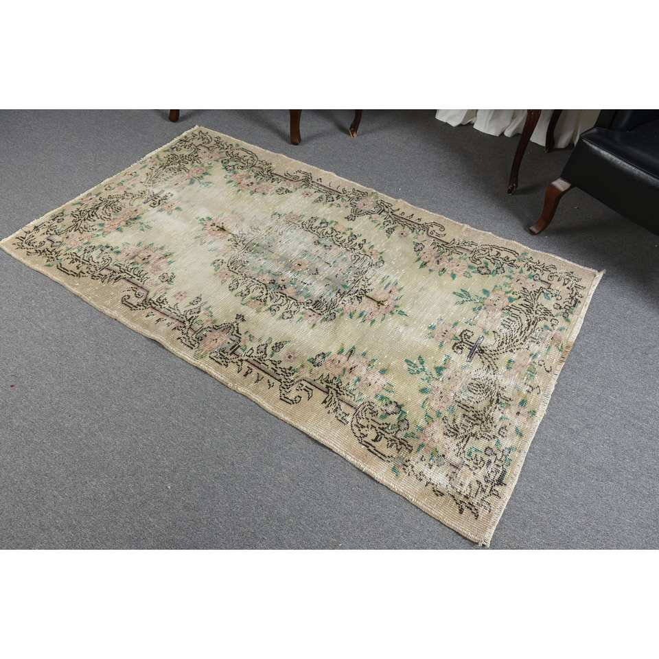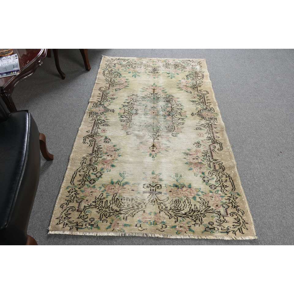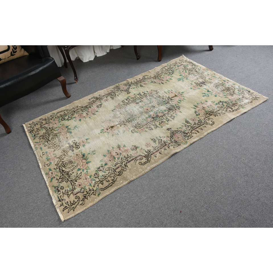 พรมขนสัตว์สีชมพูสีเบจคลาสสิกขนาด3.7x6.5ฟุตงานเย็บปะสไตล์ตุรกีสำหรับห้องนั่งเล่นห้องนอนสำหรับวัยรุ่นที่มีแผ่นยางรอง