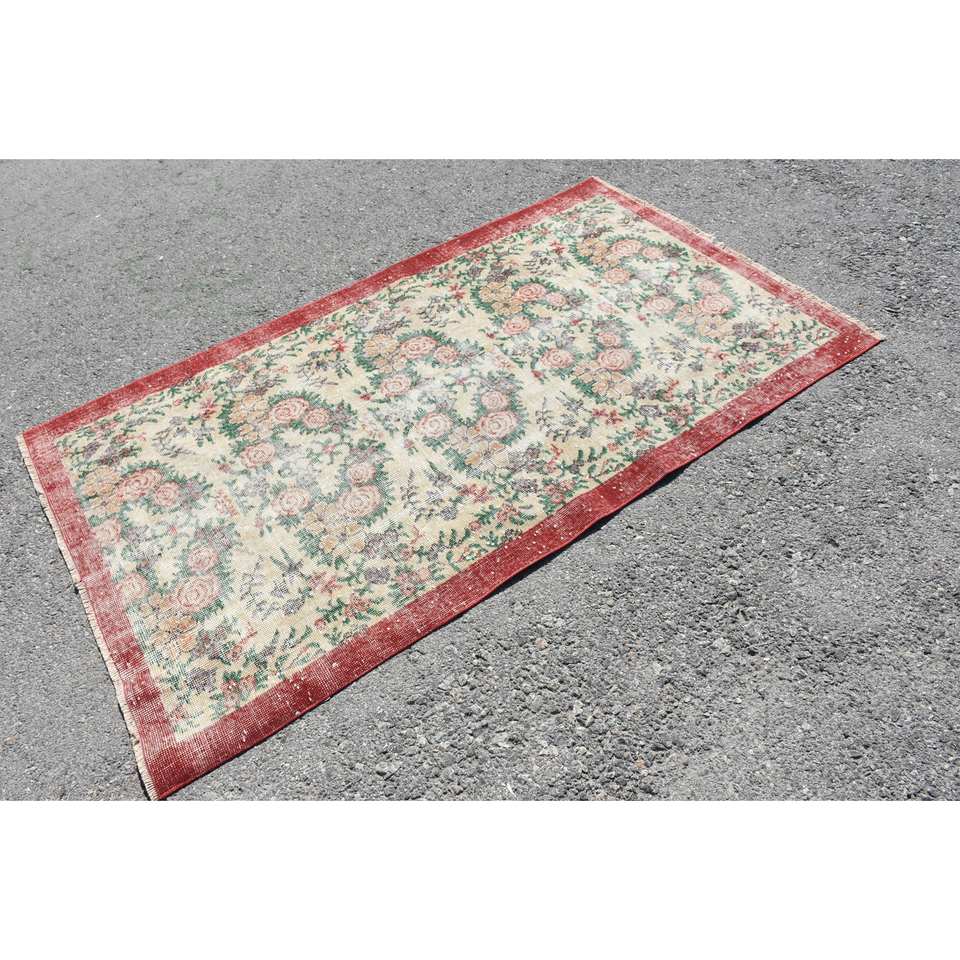 พรมสไตล์ตุรกีสีเบจคลาสสิกสีแดงขนาดใหญ่3.6x6.3ฟุตพรมลาเท็กซ์ขนสัตว์นามธรรมขนาด10มม. พรมสี่เหลี่ยมสำหรับตกแต่งโถงทางเดินในห้อง