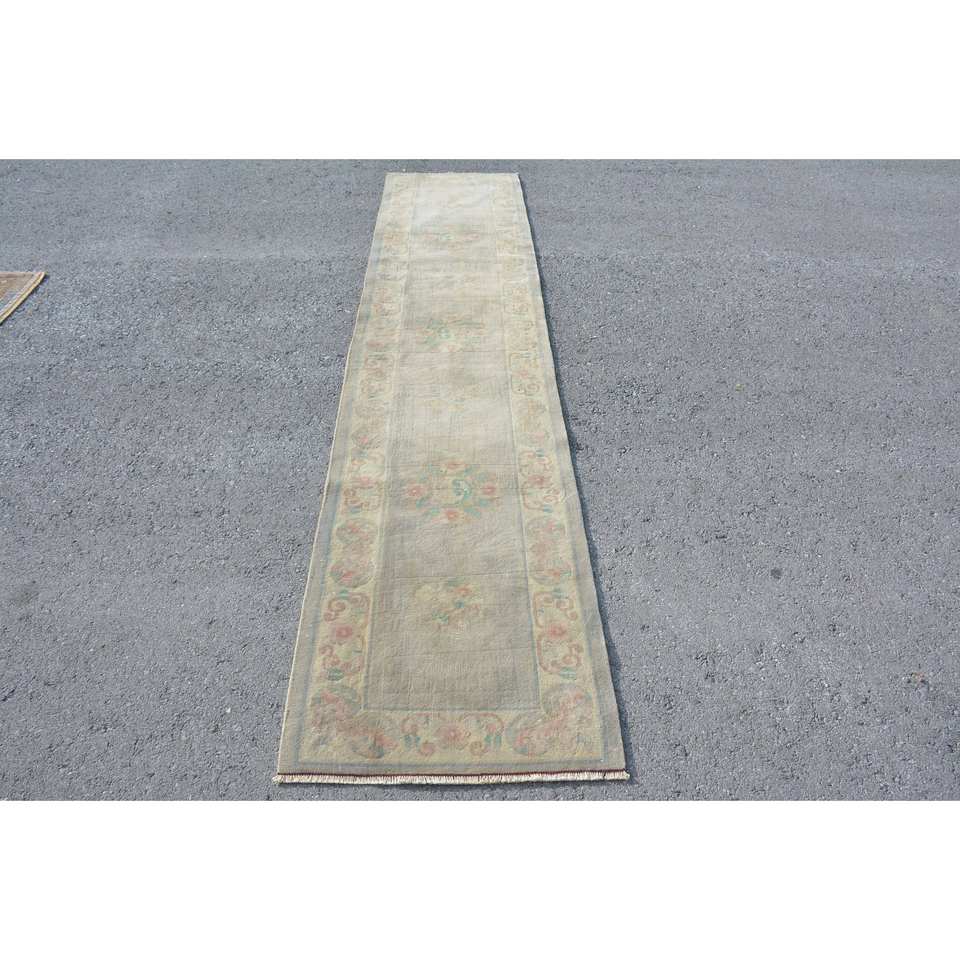พรมขนแกะสไตล์ตุรกีโบราณสีเบจคลาสสิกขนาด2.2 x 10.6ft งานแฮนด์เมดเป็นมิตรต่อสิ่งแวดล้อมดีไซน์ขนแกะโพลีเอสเตอร์