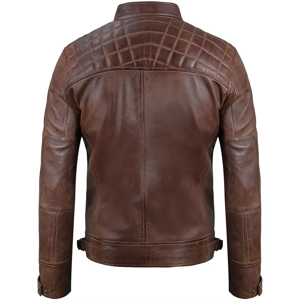 แจ็คเก็ตแฟชั่นสไตล์ไบค์เกอร์คลาสสิกสำหรับผู้ชาย ลายพราง น้ำหนักเบา หนังแกะ หนังวัว 100% ผ้าฝ้าย สำหรับคนรักแฟชั่น
