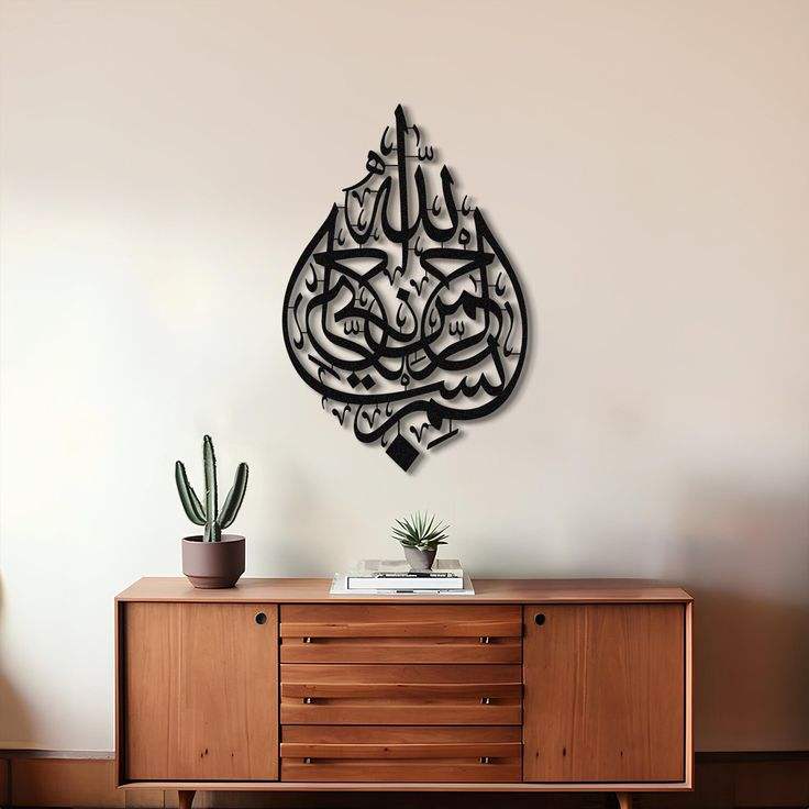 Classic Black Allah Name Islamic Calligraphy Wall Art with Framed Display for Refined Spiritual Interiors