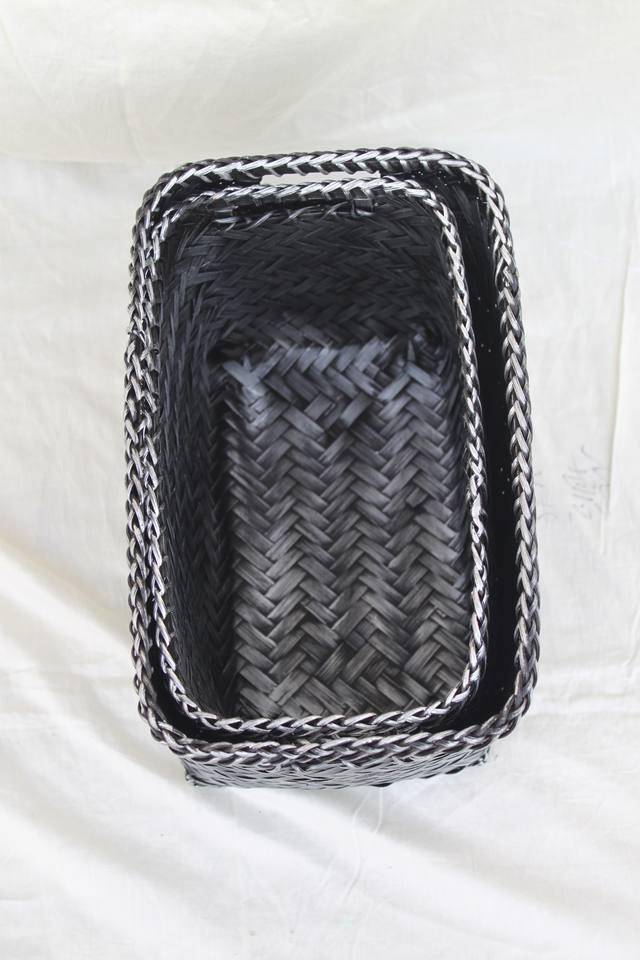 ตะกร้าเก็บของไม้ไผ่สานสีดำแบบคลาสสิก งานแฮนด์เมด สำหรับจัดระเบียบตู้เสื้อผ้าและโต๊ะเครื่องแป้ง ส่งออกจากเวียดนามโดยตรง