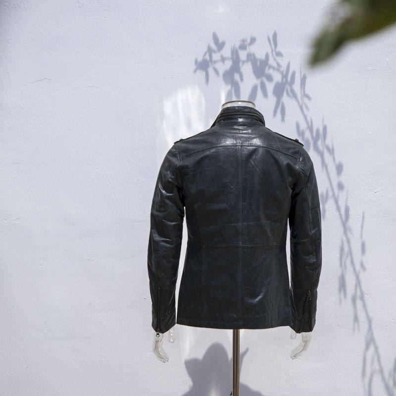 แจ็คเก็ตมอเตอร์ไซค์ผู้ชายแบรนด์คลาสสิคสีดำแบบกำหนดเอง สไตล์วินเทจ หนังแท้ กันลม กันน้ำ ระบายอากาศได้ดี น้ำหนักเบา