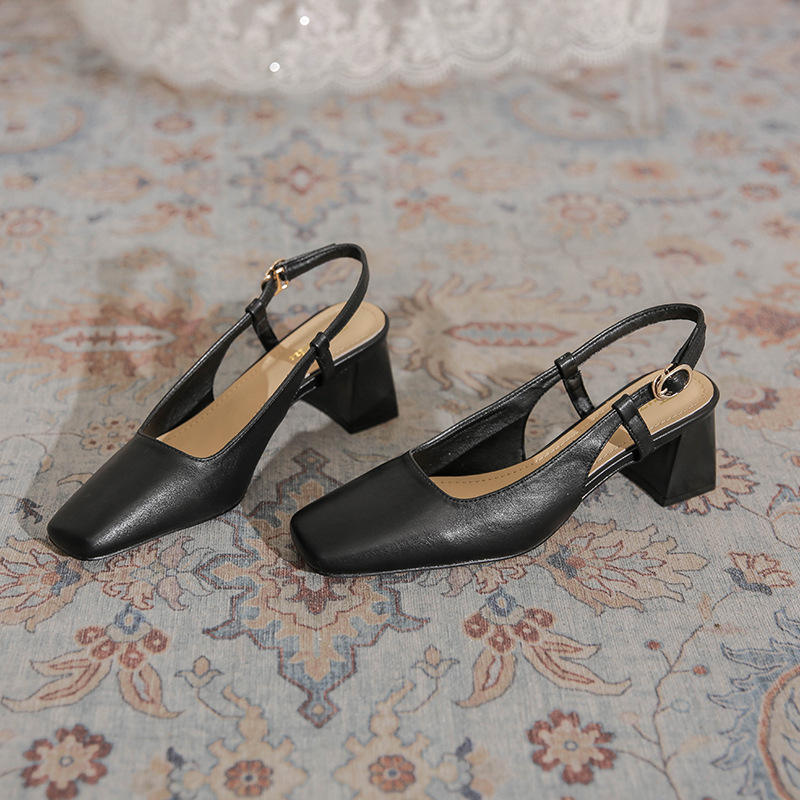 รองเท้าส้นเตี้ยสีดำคลาสสิกแบบปิดหัวสำหรับผู้หญิง รองเท้าฤดูร้อนสุดหรูสำหรับใส่ไปทำงาน งานแต่งงาน งานปาร์ตี้ และชุดลำลองประจำวัน