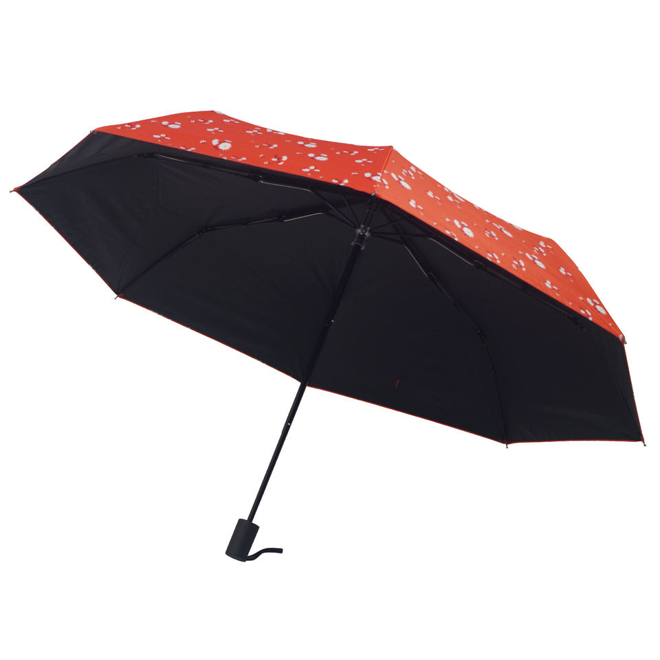 ร่มพับสามทบแบบเปิดด้วยมือสีดำคลาสสิกพร้อมสารเคลือบยูวีลายดอกไม้พิมพ์แบบเต็มรูปแบบสำหรับการเดินทางป้องกันแสงแดด