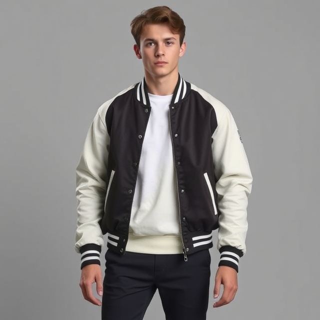 เสื้อแจ็กเก็ตเบสบอลสีดำคลาสสิกปักลายกำมะหยี่ขนแกะหนังแท้แขนเสื้อสไตล์มหาวิทยาลัยอบอุ่น