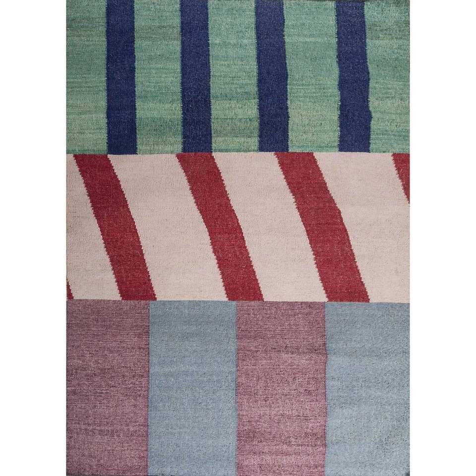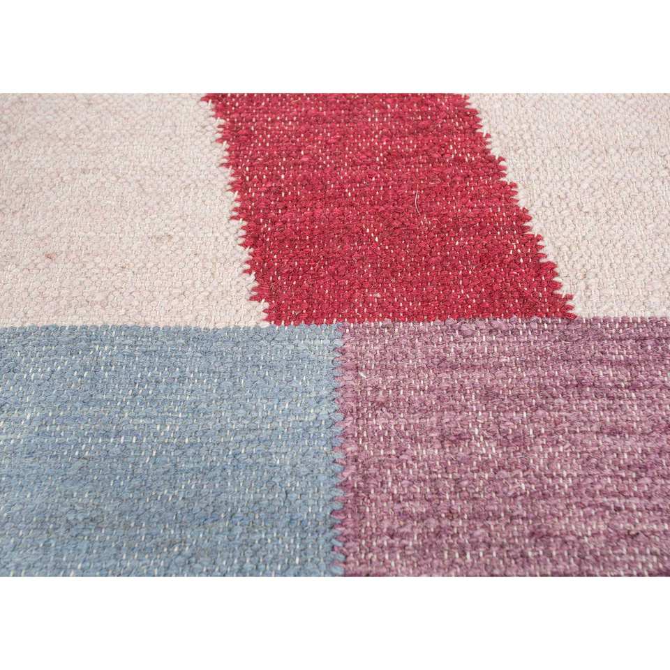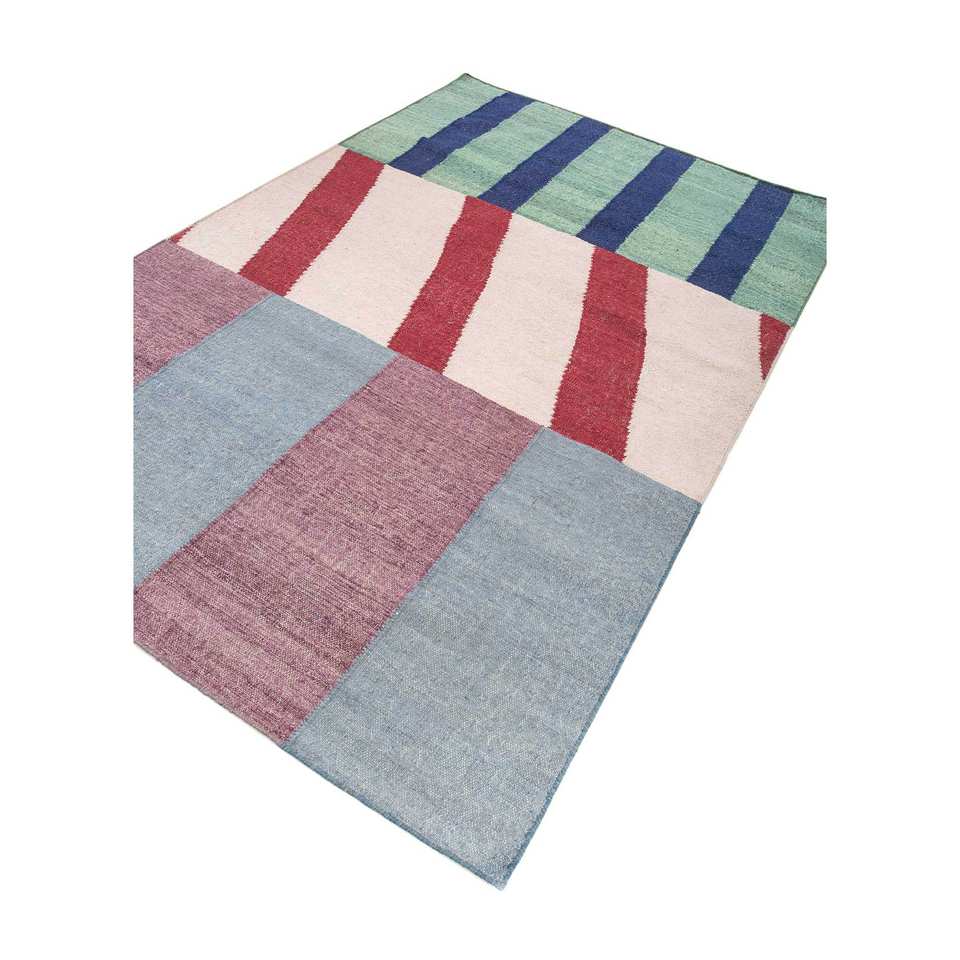 พรมขนสัตว์ทอลายเรียบสีน้ำเงินคลาสสิก ทำด้วยมือ ลายเรขาคณิต สำหรับบ้าน ห้องนั่งเล่น ห้องโถง พรมวิสโคสทรงสี่เหลี่ยมผืนผ้า-ADWL-1283