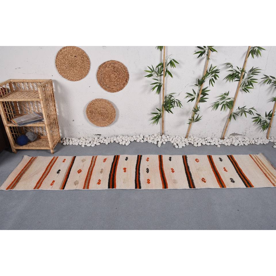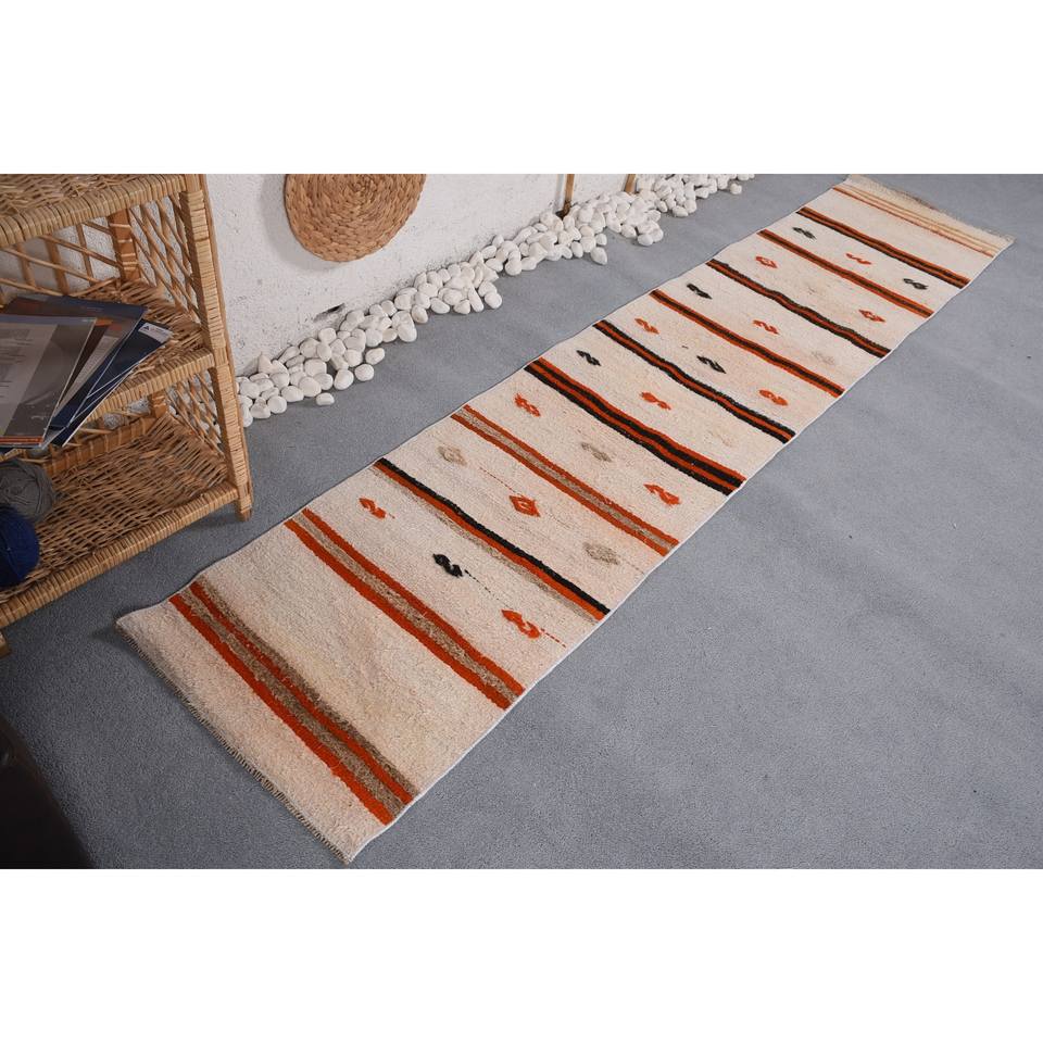 พรมขนแกะโบฮีเมียนแบบคลาสสิกขนาด9x12ทรงสี่เหลี่ยมผืนผ้าพื้นที่ขนาดใหญ่สีเบจลายทางสีส้มใหม่ขนาด1,9X9ฟุตดีไซน์โถงทางเดิน