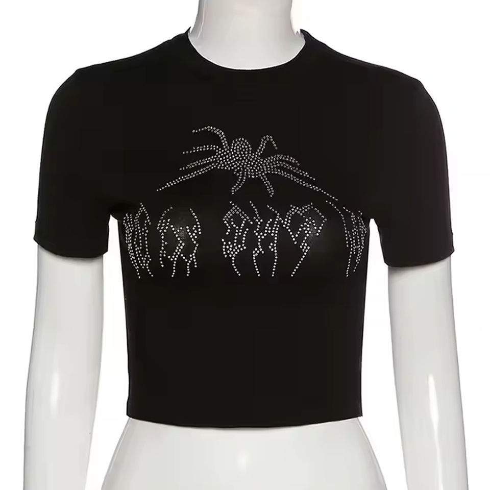 ชื่อสินค้า:เสื้อยืดประดับพลอยเทียมสำหรับผู้หญิง