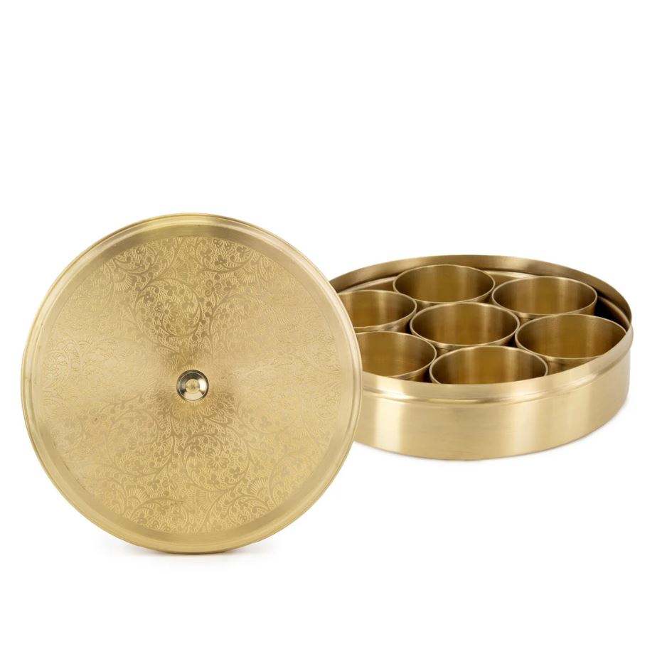 กล่องเครื่องเทศทองเหลืองคลาสสิกกล่องมาซาลาตู้เก็บของผงเครื่องเทศและสมุนไพรสำหรับบ้านและร้านอาหารอุปกรณ์ครัว