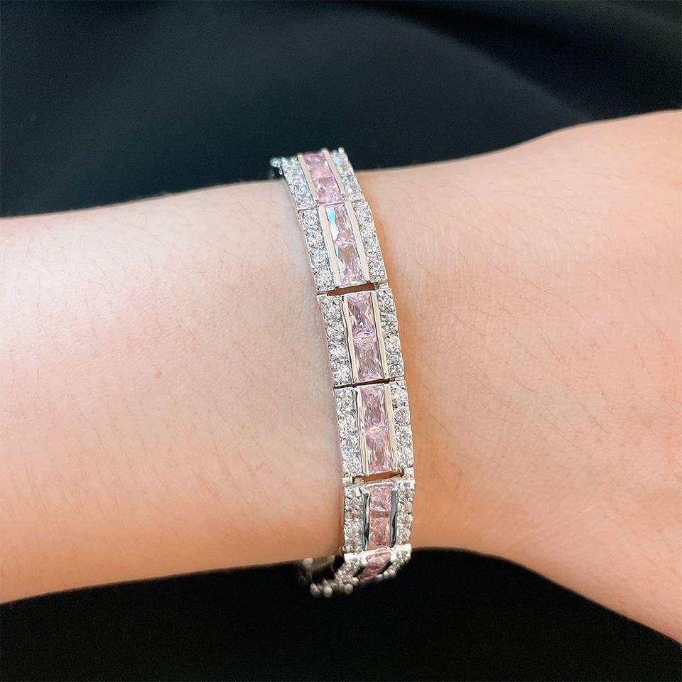 เครื่องประดับสำหรับเจ้าสาวแบบคลาสสิกสร้อยข้อมือสีชมพู CZ