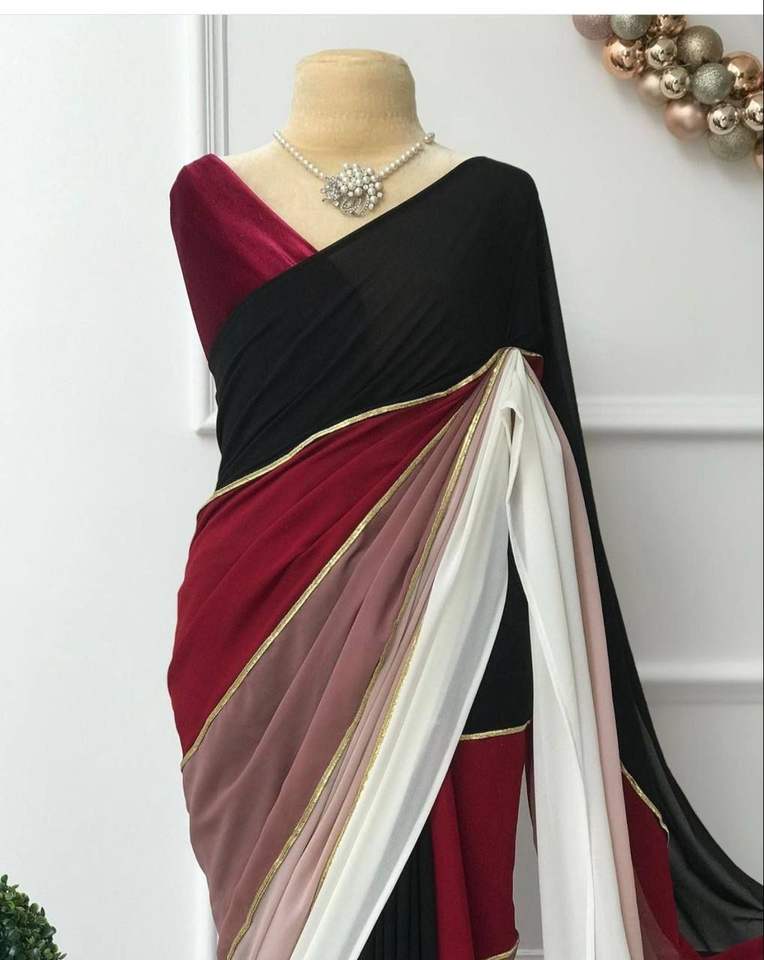 ชุดส่าหรีผ้าจอร์เจตต์สำหรับงานแต่งงานแบบคลาสสิก พร้อมเสื้อคลุมสุดพิเศษ ชุดแต่งงานอินเดีย ชุดพื้นเมืองสำหรับผู้หญิง