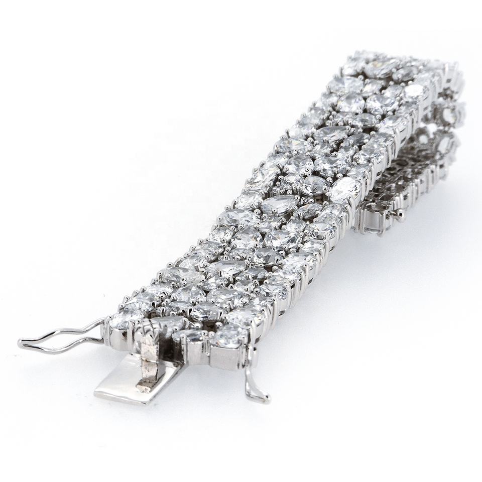 กำไลข้อมือทองเหลืองชุบโรเดียมประดับเพชร CZ สีขาวคลาสสิกแบบผสม-รุ่นฉลองครบรอบ LAVINA สำหรับทุกเพศ ปรับแต่งได้