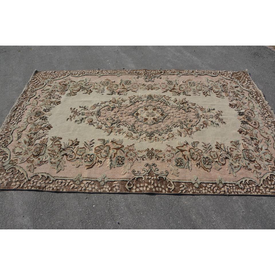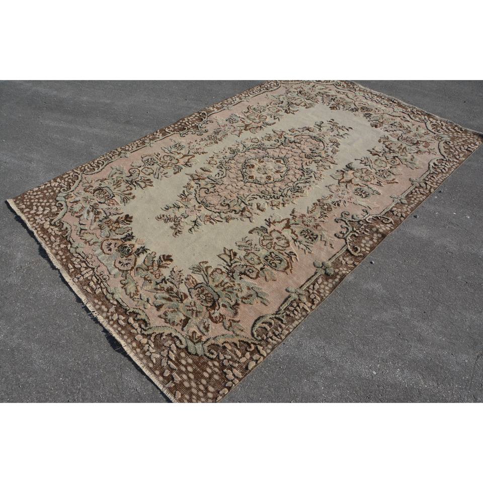 พรมตุรกีโบราณสีเบจสีน้ำตาล5.5x8.6ฟุตห้องโถงสี่เหลี่ยมผืนผ้าขนสัตว์เทียมขนกระต่ายสำหรับข้างเตียง