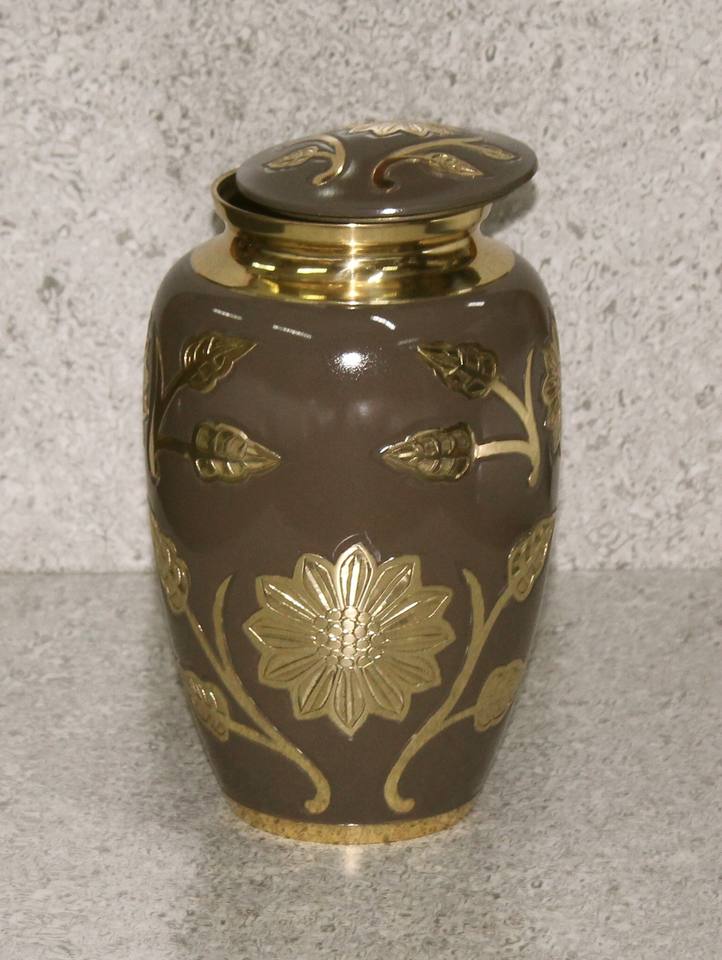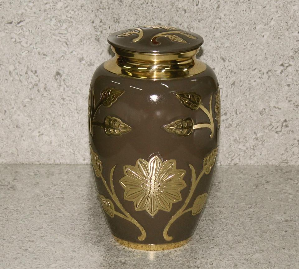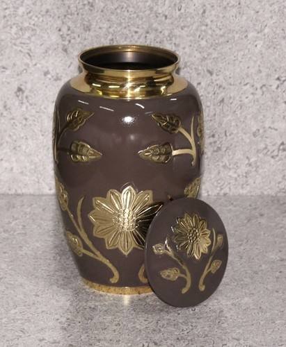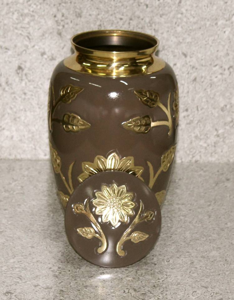 โกศบรรจุอัฐิโลหะทองเหลืองสลักลายดอกไม้สีน้ำตาลคลาสสิกสำหรับผู้ใหญ่ สไตล์อเมริกัน/ยุโรป