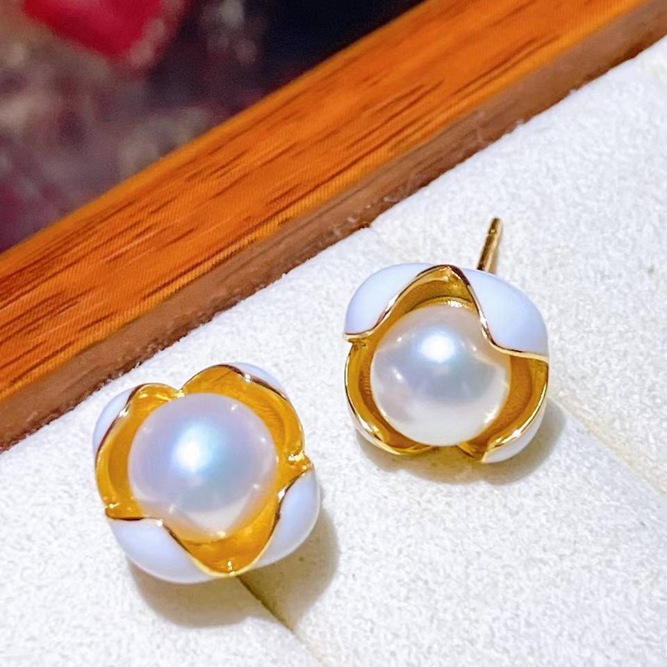 ต่างหูมุกน้ำจืดดีไซน์คลาสสิกเรียบง่ายและอเนกประสงค์ ต่างหูมุกจูจี้