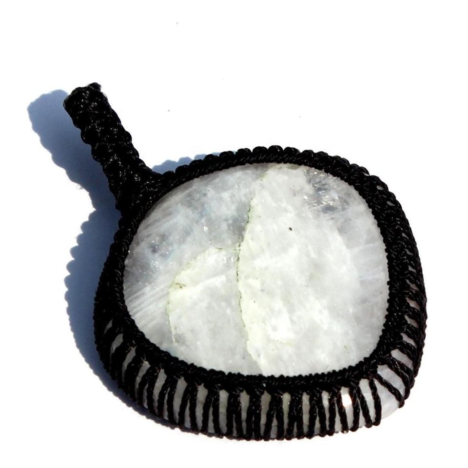 จี้หินสายสร้อยมาโครเมี่ยวงรูปหัวใจลายพระจันทร์สีรุ้งแบบคลาสสิก