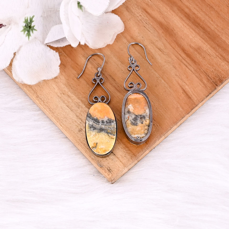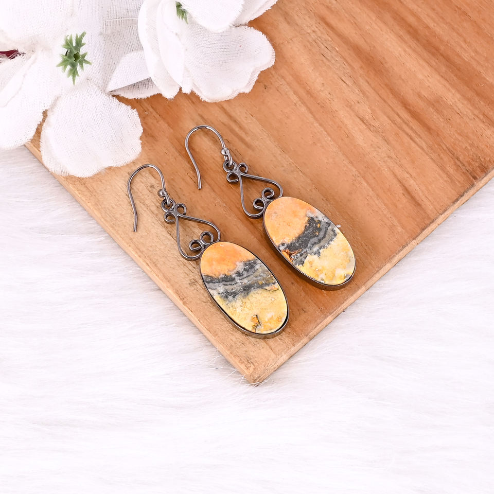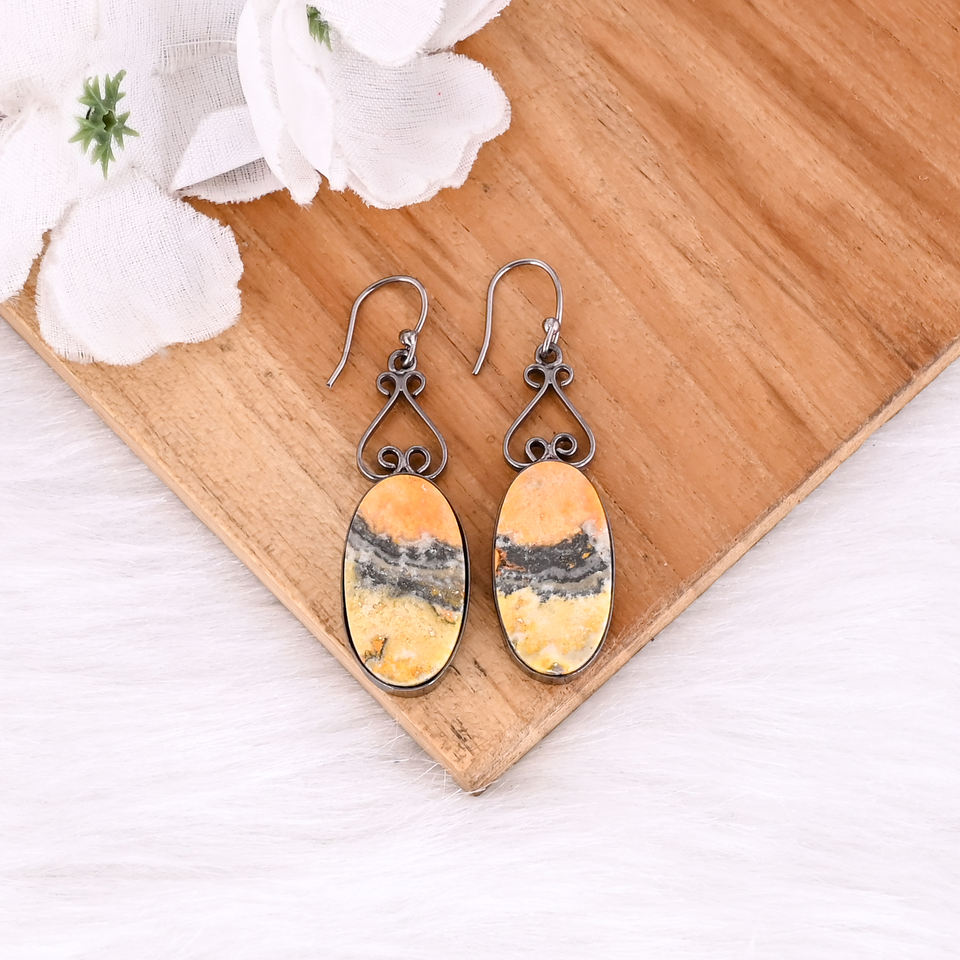ต่างหูห้อยทรงหยดน้ำประดับพลอยแจสเปอร์ลายผึ้งคลาสสิก ชุบโรเดียมสีดำ ต่างหูทองเหลืองสไตล์ทันสมัย เหมาะสำหรับงานแต่งงานและงานปาร์ตี้