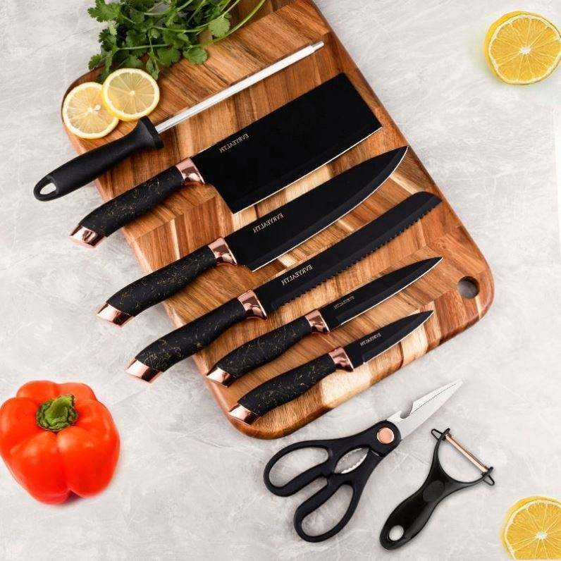ชุดมีดแล่เนื้อสเตนเลสสตีลแข็งพิเศษ Classic Butcher พร้อมที่ลับมีดแบบเพชรสำหรับหั่นขนมปัง มีดครัวใช้งานได้ทั้งสองมือ รุ่น MR01