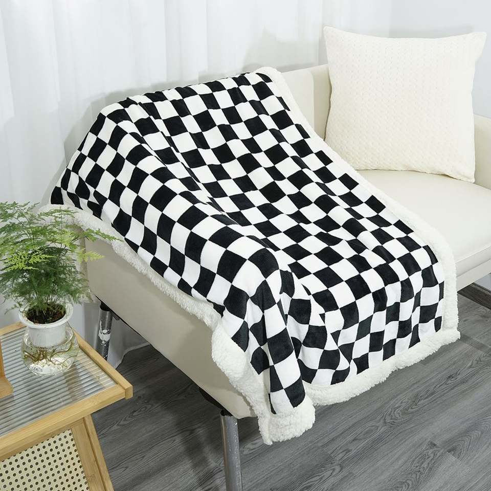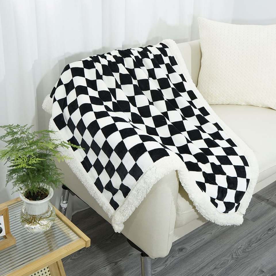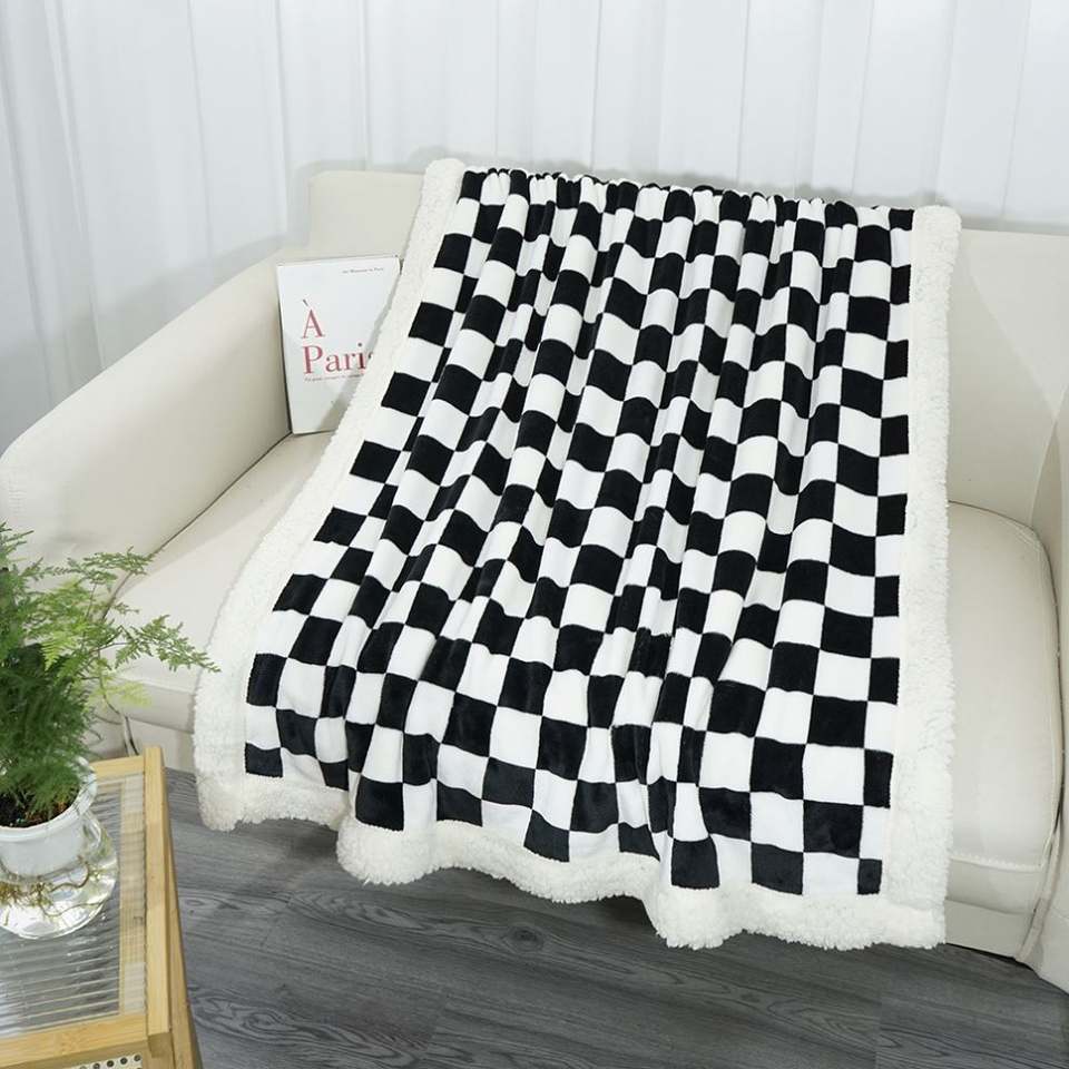 ผ้าห่มขนแกะเชอร์ปาผ้าสักหลาดสีดำพิมพ์ลายคลาสสิกสำหรับใช้ในบ้านผ้าห่มผ้าหนานุ่มสบายแบบปรับแต่งได้
