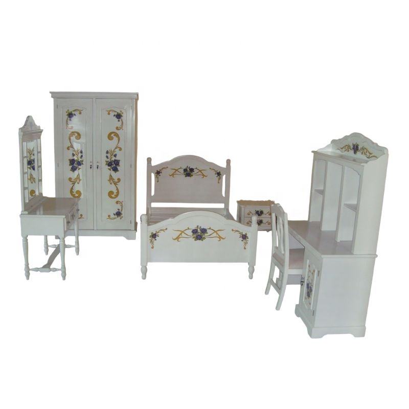 คลาสสิกเด็กชุดเฟอร์นิเจอร์ห้องนอนเด็กเฟอร์นิเจอร์จากไม้ทาสีในสีขาวด้วยมือตกแต่งทาสี