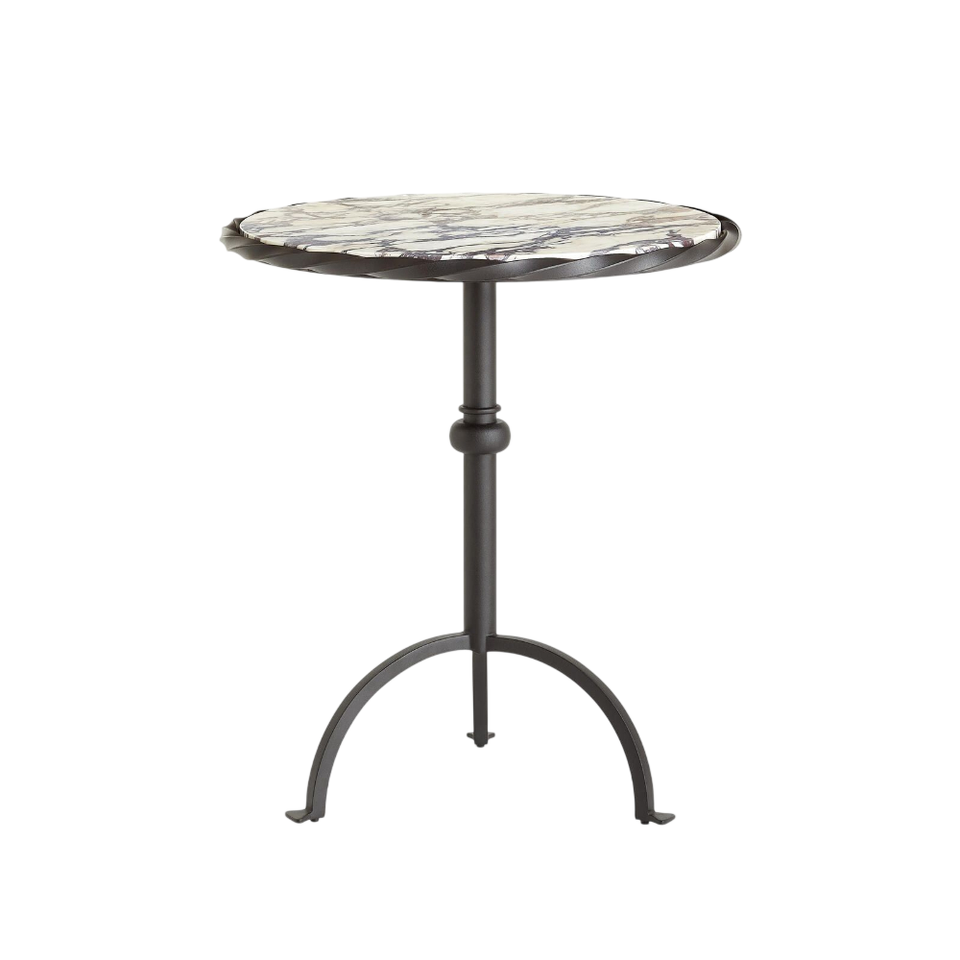 โต๊ะกาแฟทรงกลมแบบคลาสสิก ท็อปหินอ่อนเทียมสีน้ำเงิน ขอบทองเหลือง ฐานเหล็กสีดำ เฟอร์นิเจอร์สำหรับรับประทานอาหาร ใช้ได้ทั้งภายในและภายนอกอาคาร