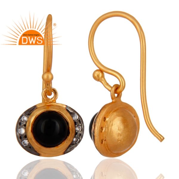 ต่างหูห้อยคลาสสิค คอลเลคชั่น ชุบทอง 18k เงินแท้ 925 ประดับด้วยพลอยออนิกซ์สีดำธรรมชาติและเพทายสีขาว ผู้จำหน่ายเครื่องประดับ