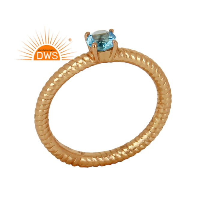 แหวนโทแพซสีน้ำเงินเงา คอลเลคชั่นคลาสสิก เครื่องประดับแฟชั่นสำหรับสาวๆ ผู้จัดจำหน่าย แหวนเงินแท้ชุบทองคำขาว 18k ดีไซน์เกลียว