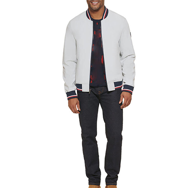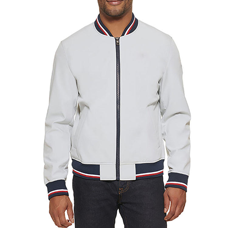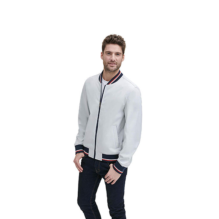 เสื้อแจ็กเก็ตทีมวิทยาลัยคลาสสิกชายคอปกมีกระเป๋าด้านในปักกันลมเป็นมิตรกับสิ่งแวดล้อม