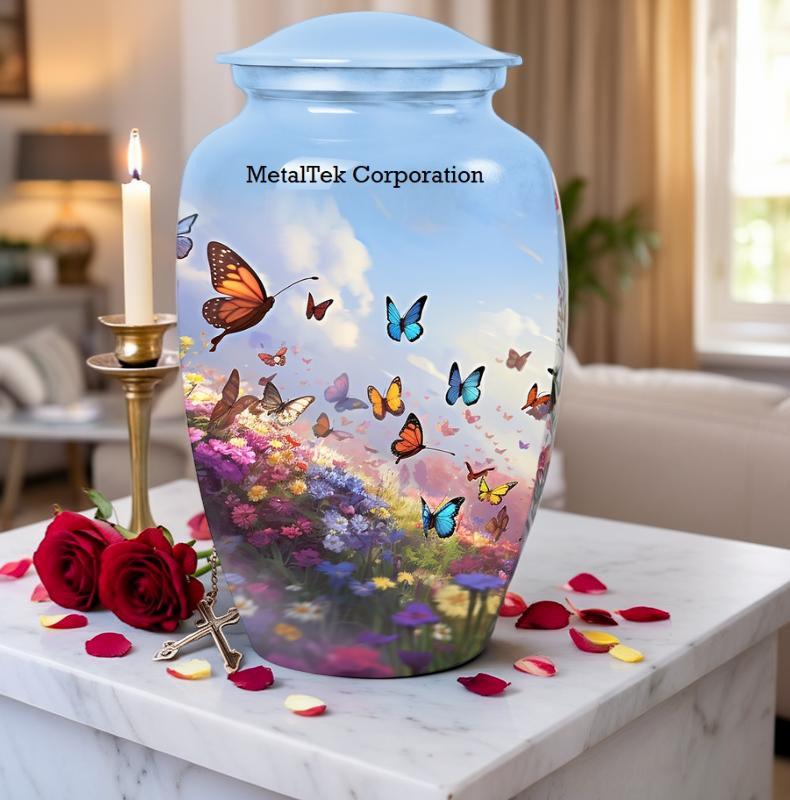 โกศใส่เถ้ากระดูกรูปผีเสื้อหลากสีคลาสสิกสำหรับใส่เถ้ากระดูกและโถบุรุณศพสำหรับสัตว์เลี้ยงผู้หญิงผู้ชาย