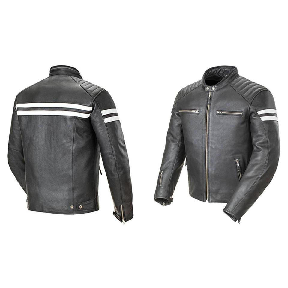 เสื้อแจ็กเก็ตหนังมอเตอร์ไซด์กันลมพร้อมปกหนังวัวสไตล์คลาสสิกสำหรับแข่งรถมอเตอร์ไซค์