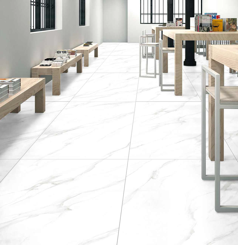 กระเบื้องปูพื้นพอร์ซเลนสีขาวปะการังคลาสสิกขนาด600x1200มม. ลวดลายซาตินผิวด้านกันลื่นทำจากไม้แข็งด้านในอินเดีย