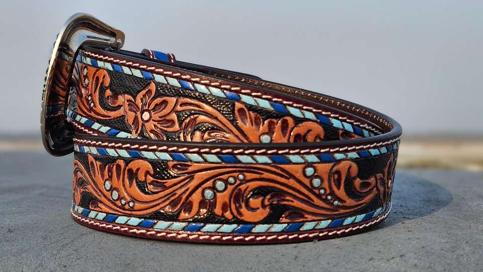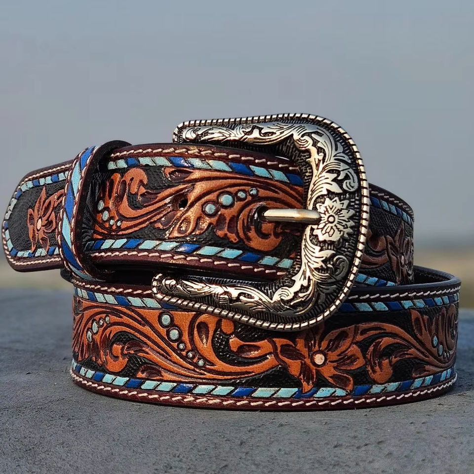 เข็มขัดหนังคาวบอยวินเทจคลาสสิก พร้อมหัวเข็มขัดโลหะผสมที่ทนทาน และลวดลายดอกไม้ที่สลักอย่างสวยงาม เป็นเครื่องประดับแฟชั่น