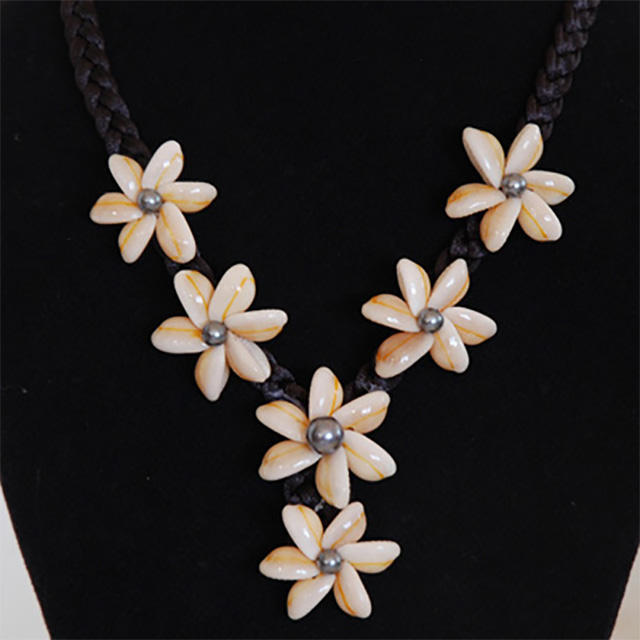 สร้อยคอเปลือกหอยวัวแบบคลาสสิกประดับด้วยลูกปัดลวดลายดอกไม้สำหรับงานปาร์ตี้เครื่องประดับเปลือกหอย