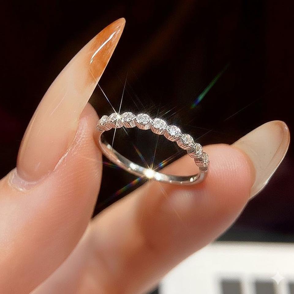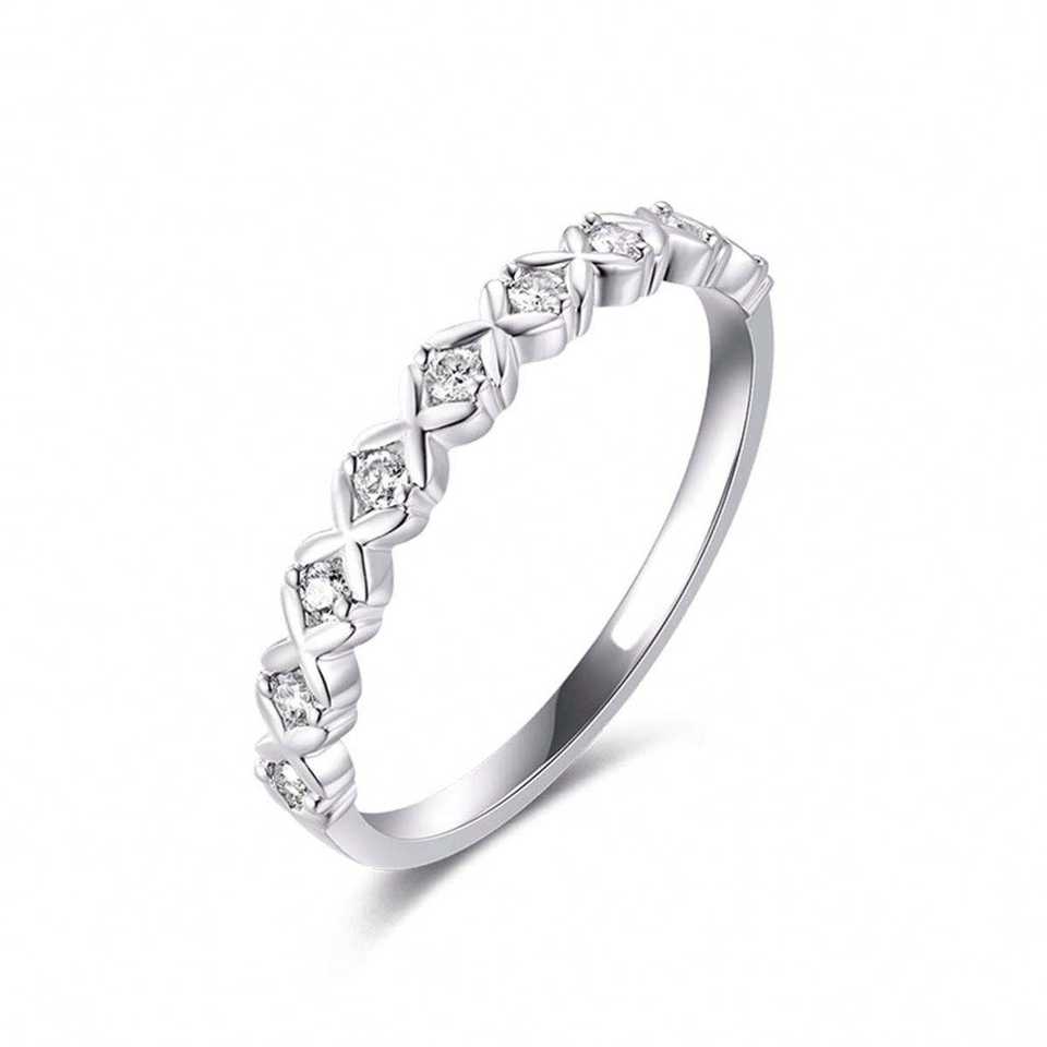 Classic Cross Nought Design Half Eternity Wedding Band Cubic Zircon 925 Sterling Silver X-Shape Dainty Engagement Ring Prong Set
