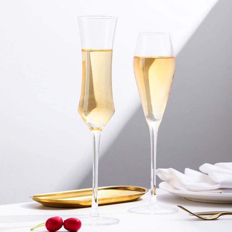 คริสตัลคลาสสิกสำหรับขลุ่ย-ก้านโค้งสำหรับทำสปาร์กลิงไวน์และแก้วค็อกเทลสุดสร้างสรรค์สำหรับบ้าน/งานเลี้ยง