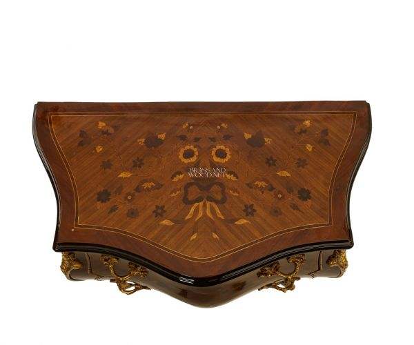 ตู้คอนโซลไม้โค้งคลาสสิก พร้อมลวดลายฝังและตกแต่งด้วยงานปิดทอง ตู้คอนโซลหรูหราสง่างามสำหรับตกแต่งภายใน