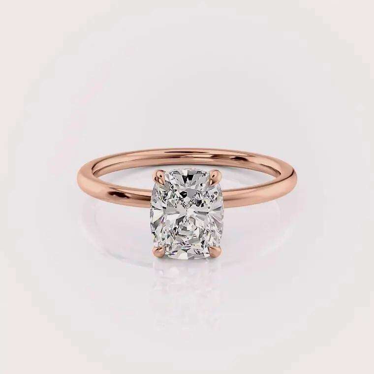 Classic Cushion Shape Lab Grown Diamond Ring with IGI Certified 14K Rose/Yellow/White Gold Band Rhodium Plated