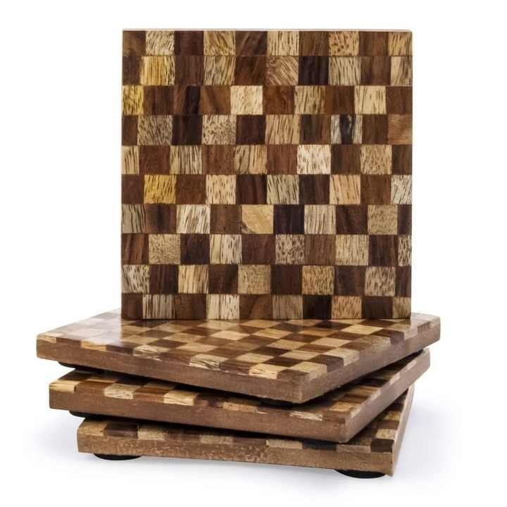 ชุดที่รองแก้วไม้หินอ่อนสีน้ำตาลแกะสลักแบบคลาสสิกดีไซน์ใหม่เครื่องดื่มไม้อะคาเซียทรงสี่เหลี่ยมวอลนัทปรับขนาดได้ตามต้องการ