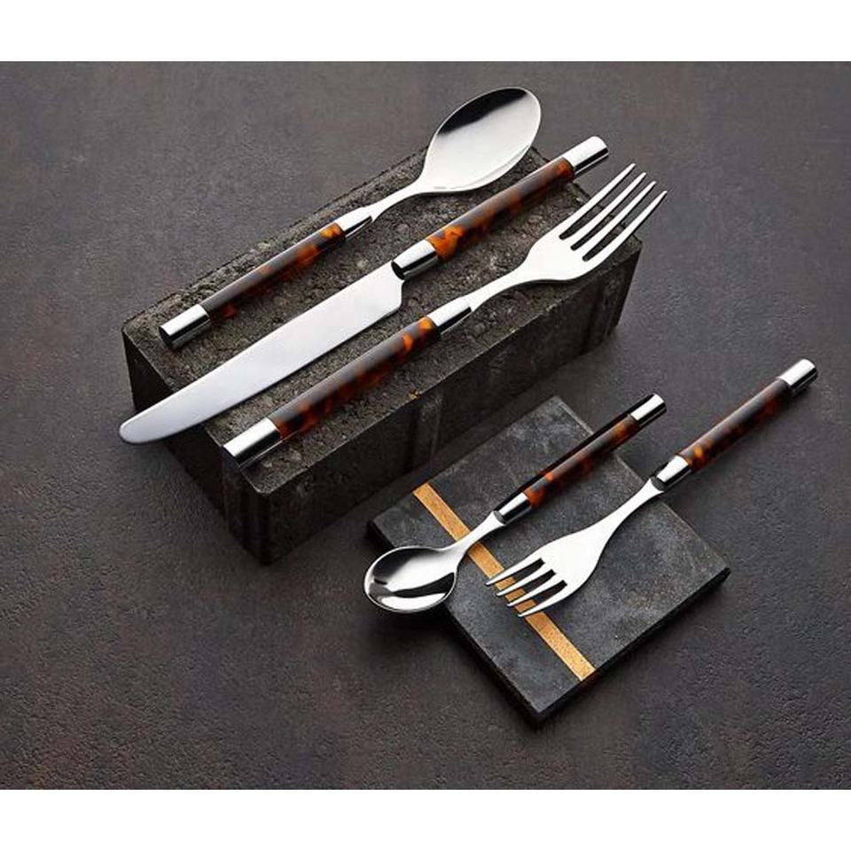 ชุดมีดสแตนเลสสตีลแบบคลาสสิกชุดรับประทานอาหารค่ำพร้อมด้ามด้ามยาวสุดหรูชุบเงินหรูหรา