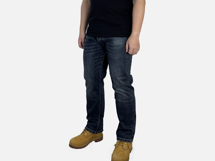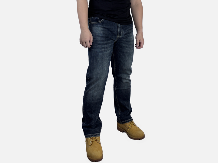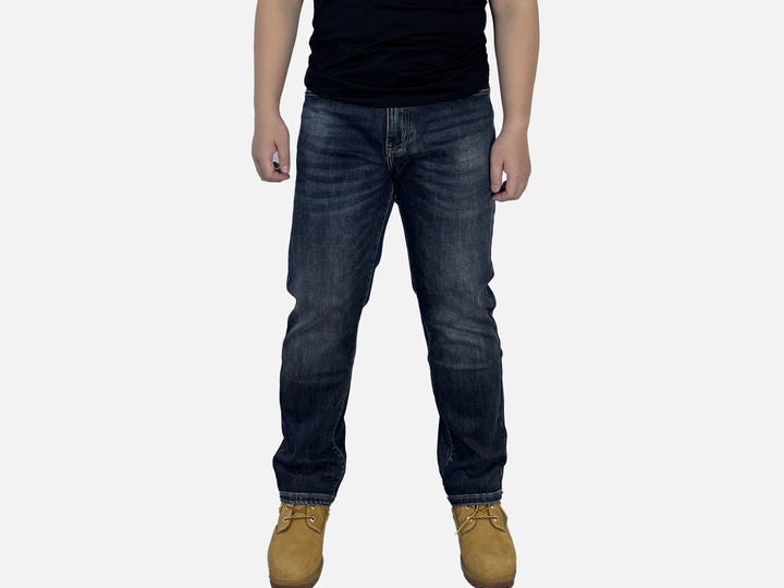 กางเกงยีนส์คลาสสิกสำหรับผู้ชายทรงตรงใส่สบายมีสไตล์กางเกงยีนส์สีน้ำเงิน